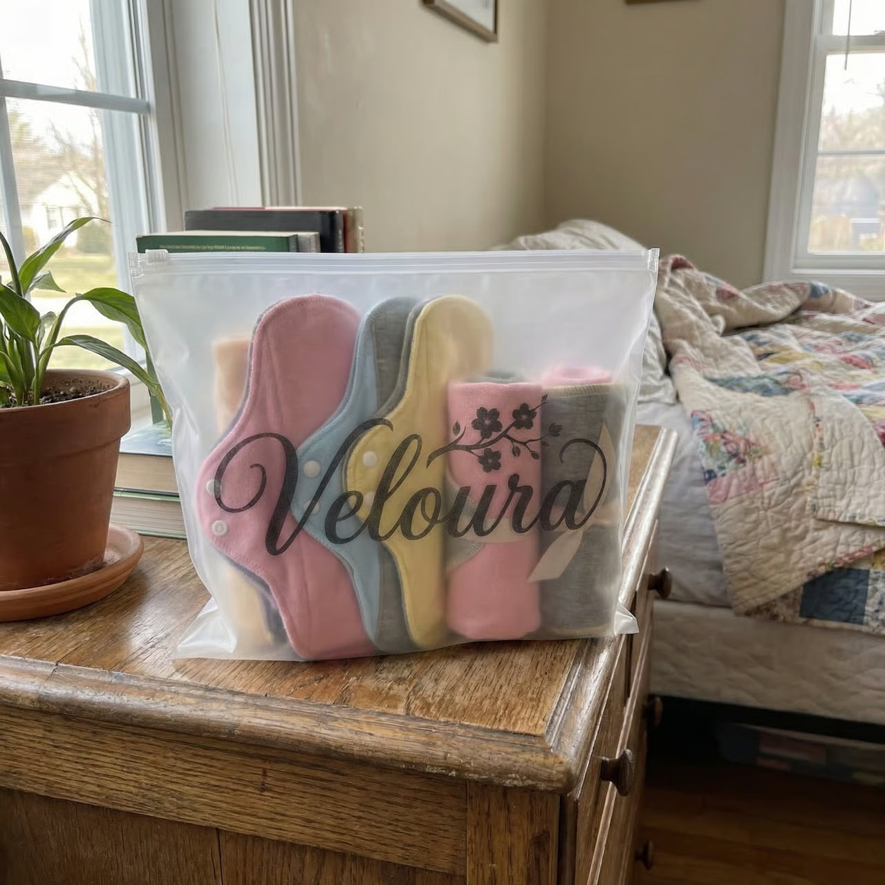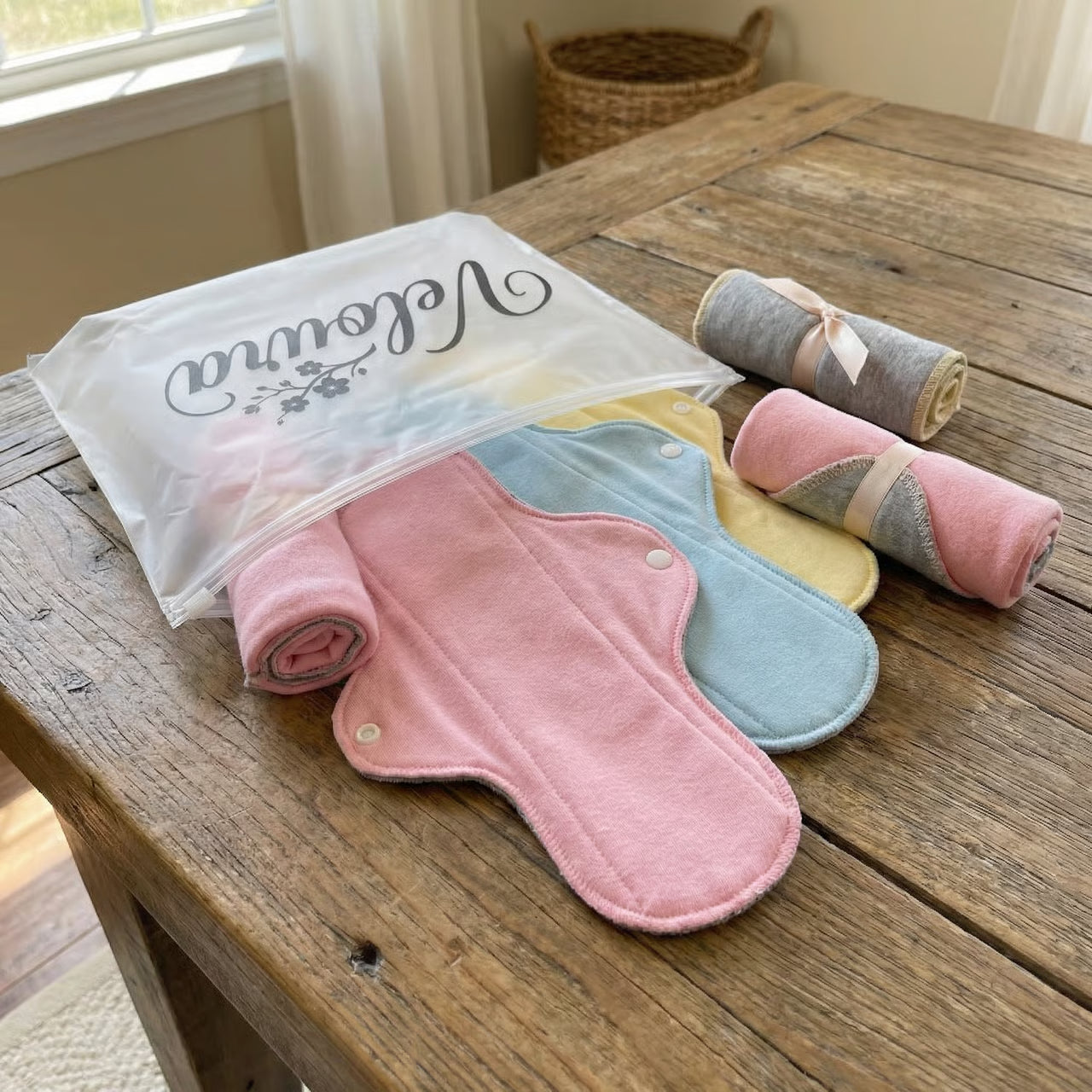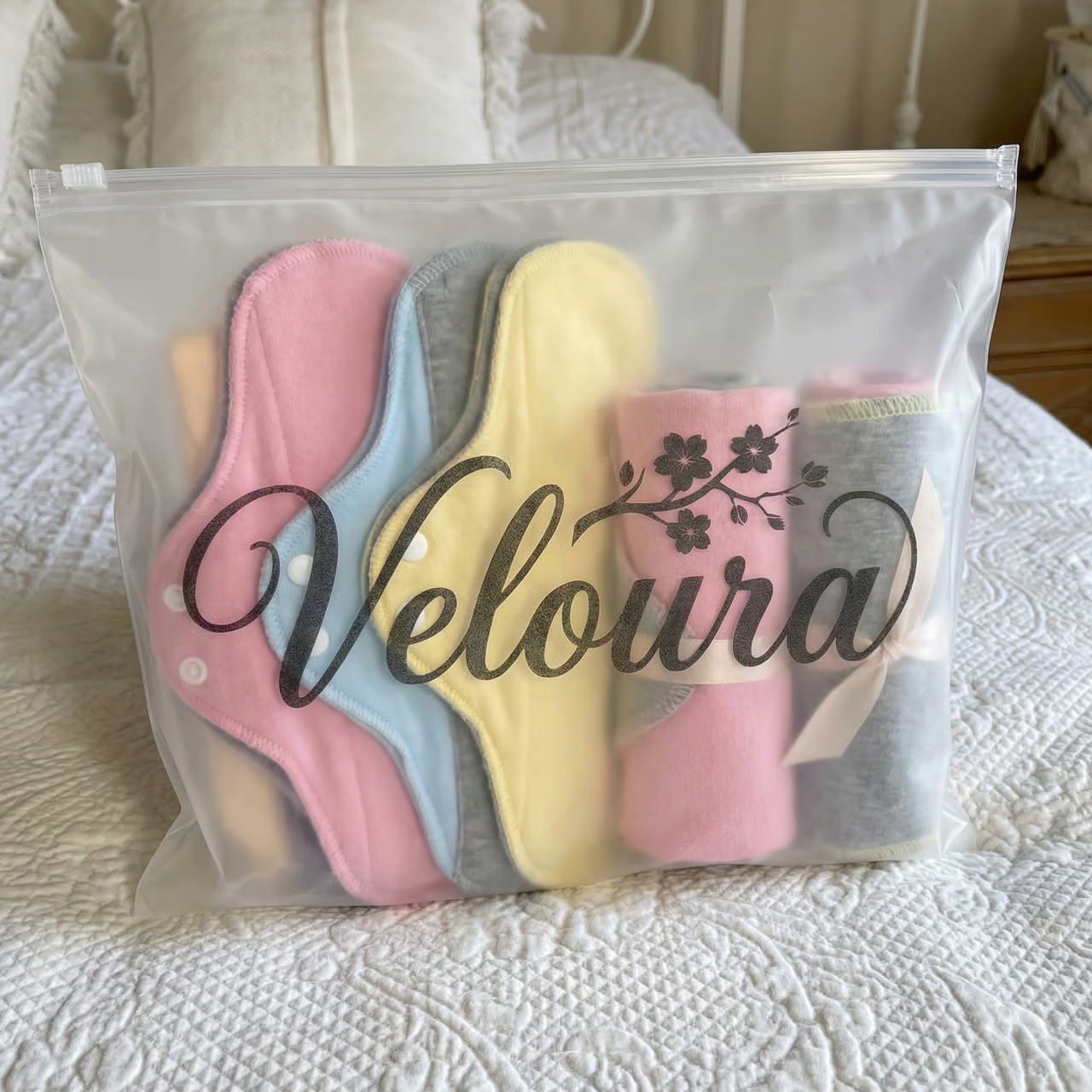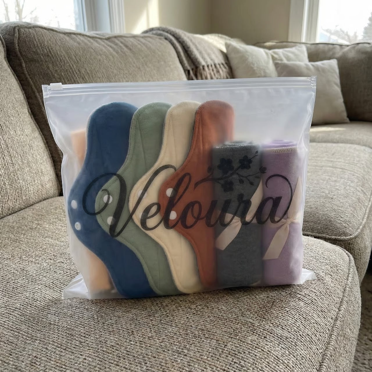 No. Veloura Pads are made with soft, fabric layers—no crinkling or plastic sounds.