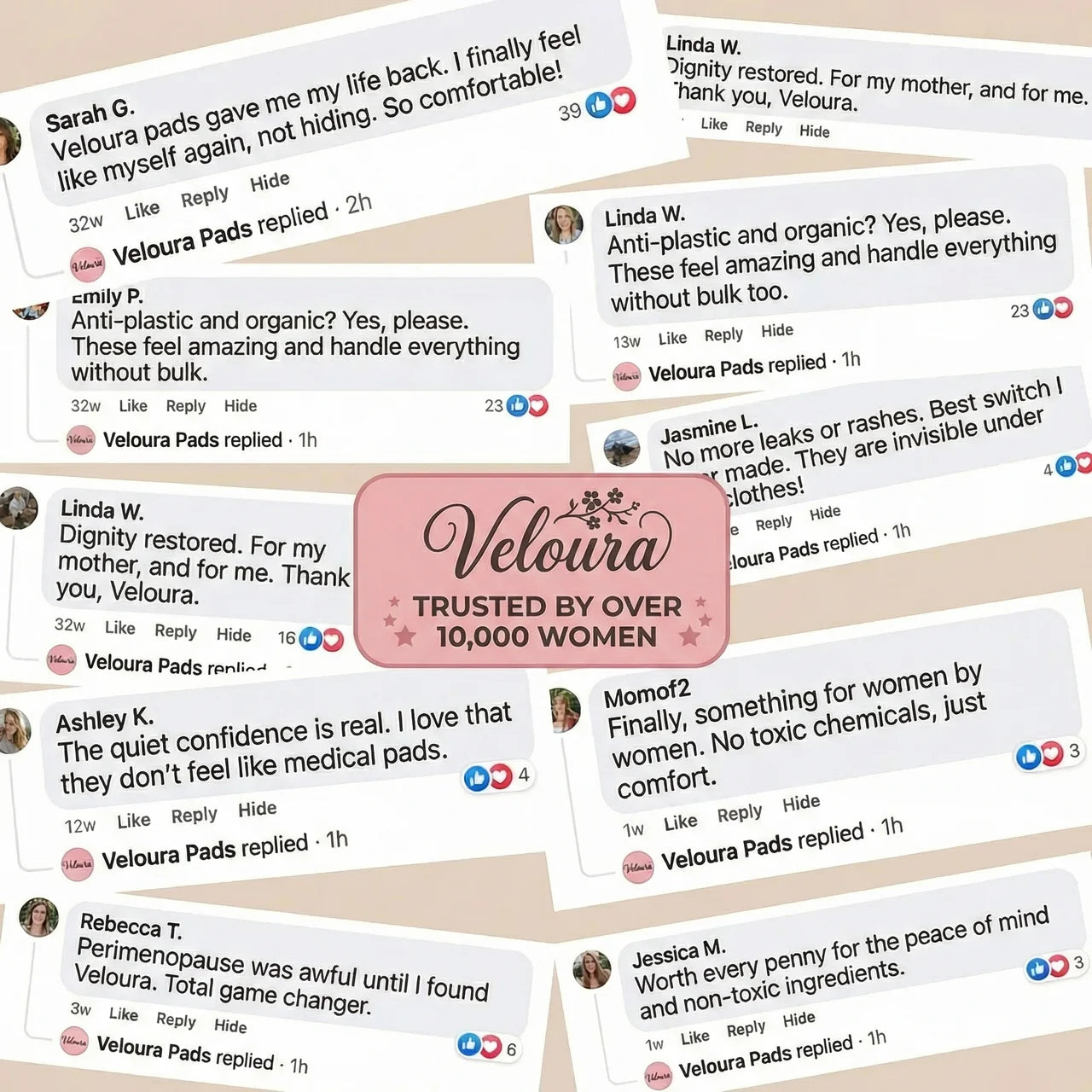 Results based on feedback from users who consistently wore Veloura Pads for daily protection, including light leaks, long workdays, and active routines.